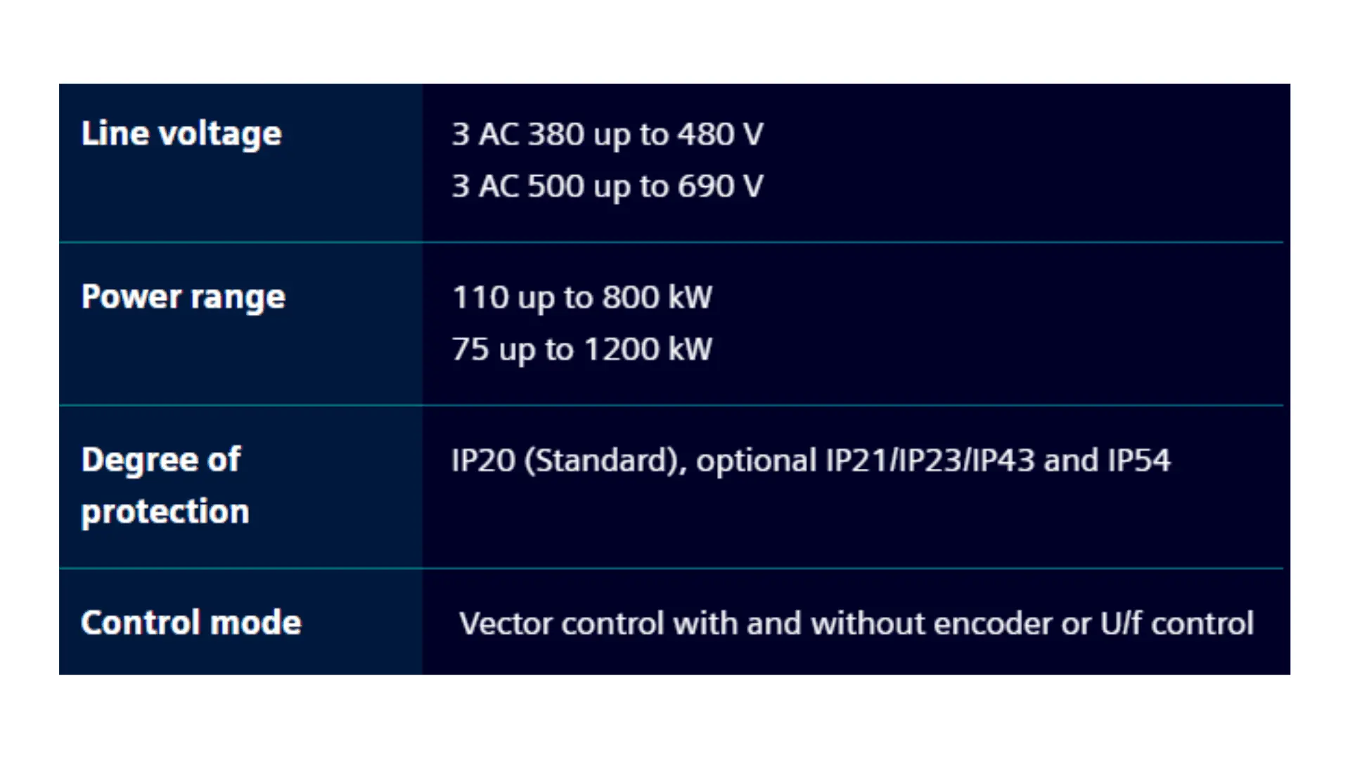 - Standard mains power supply to allow 4Q operation without restrictions.